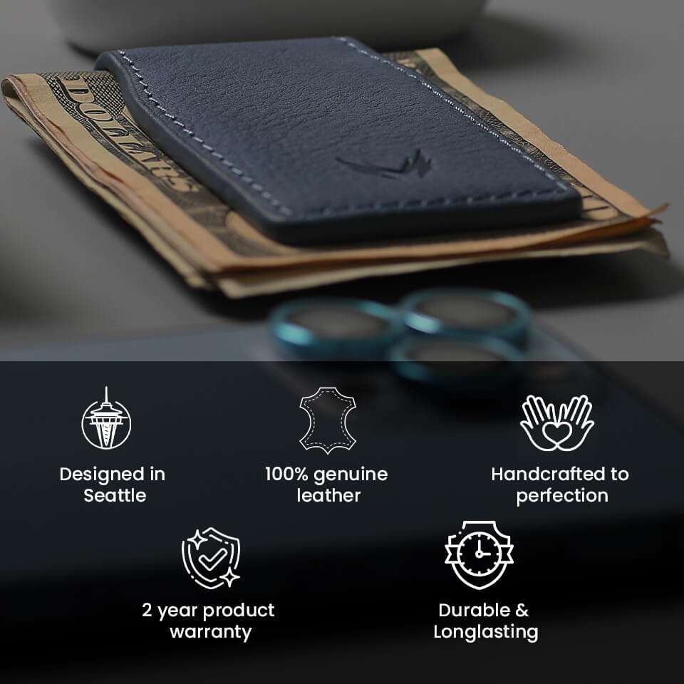Our wallets and money clips are proudly designed in Seattle and created by artisans from across the world. Every product is handmade which means each product is unique in terms of designs, leather pattern, and stitches. These variations are subtle and not obvious but your money clip is unique and belongs only to you. Not to forget, our money clips suit every pocket, quite literally.